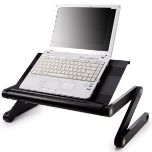 This laptop stand can be adjusted in height making it ideal for use while sitting on the sofa or lying in bed. The folding parts make this stand very easy to assemble and put away once finished.